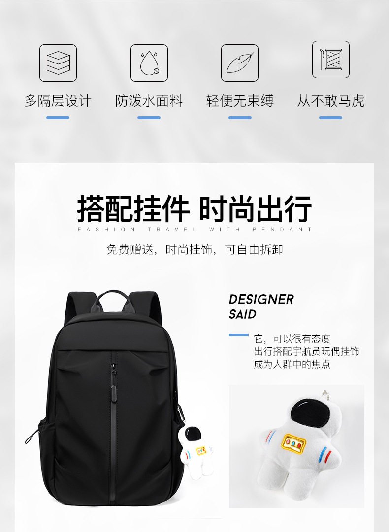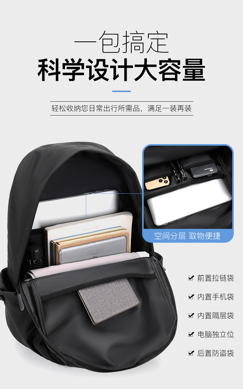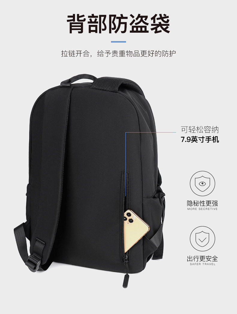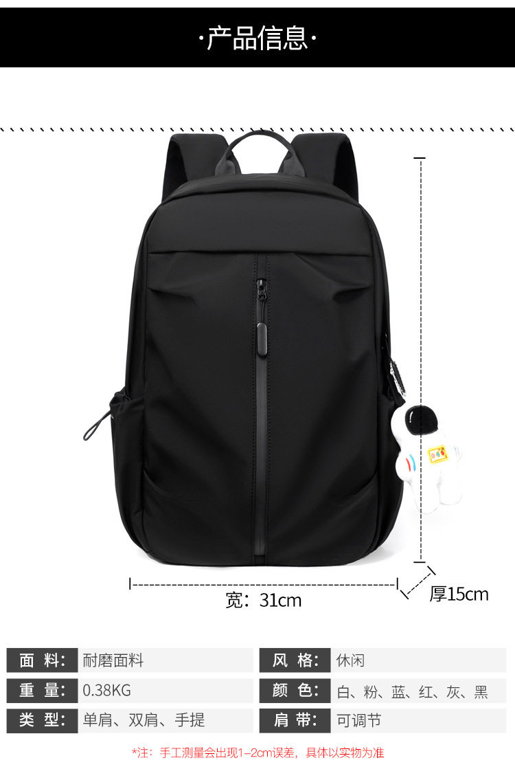 Backpack Casual Trendy Brand Street Simple Backpack Oxford Cloth Water-repellent Men’s and Women’s Schoolbag Middle School Student