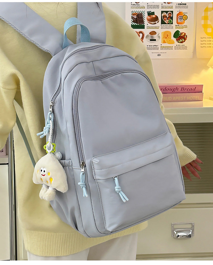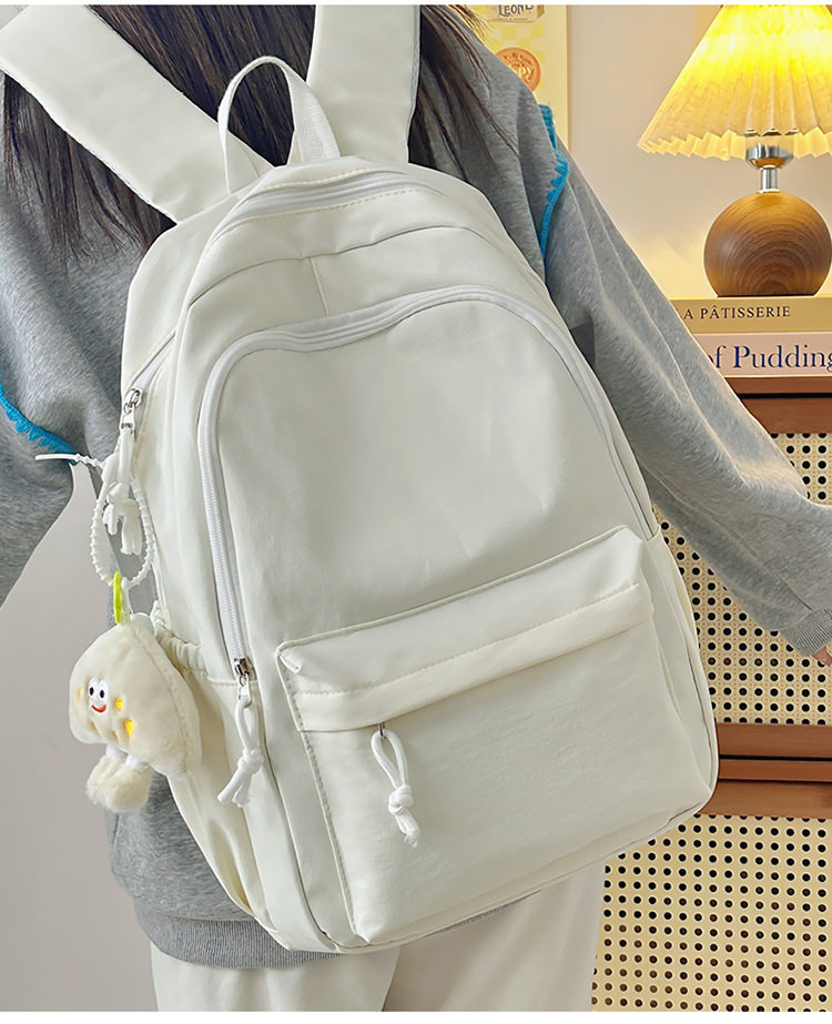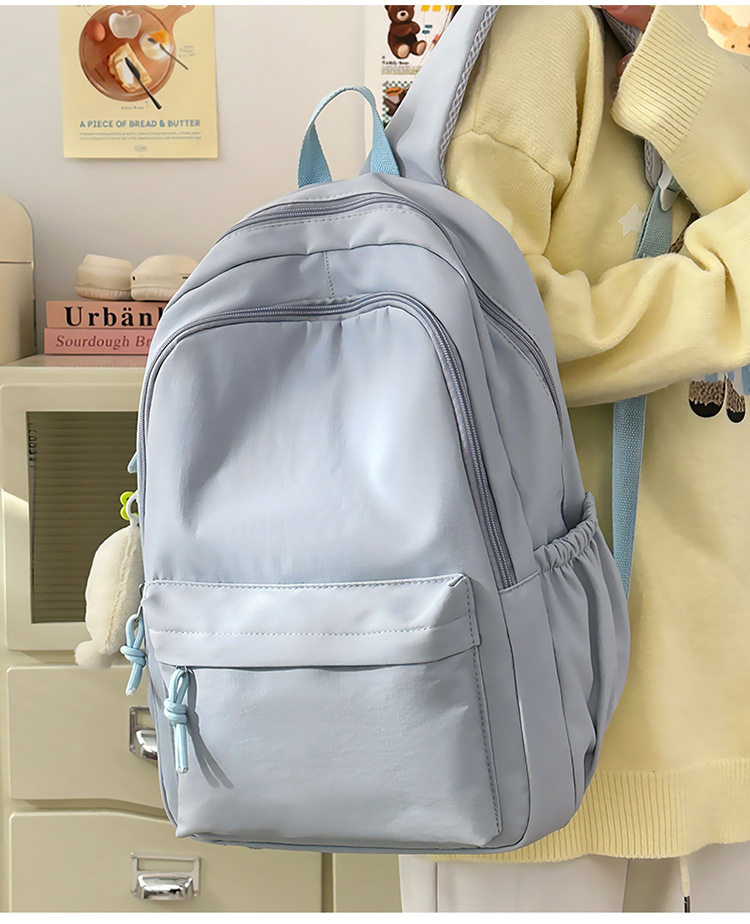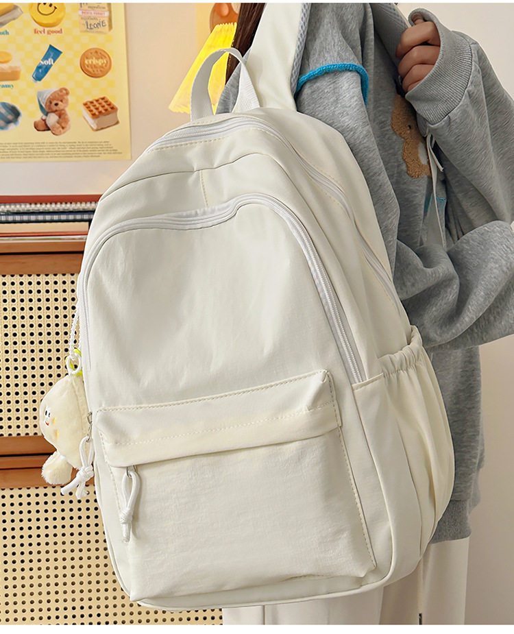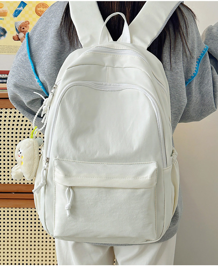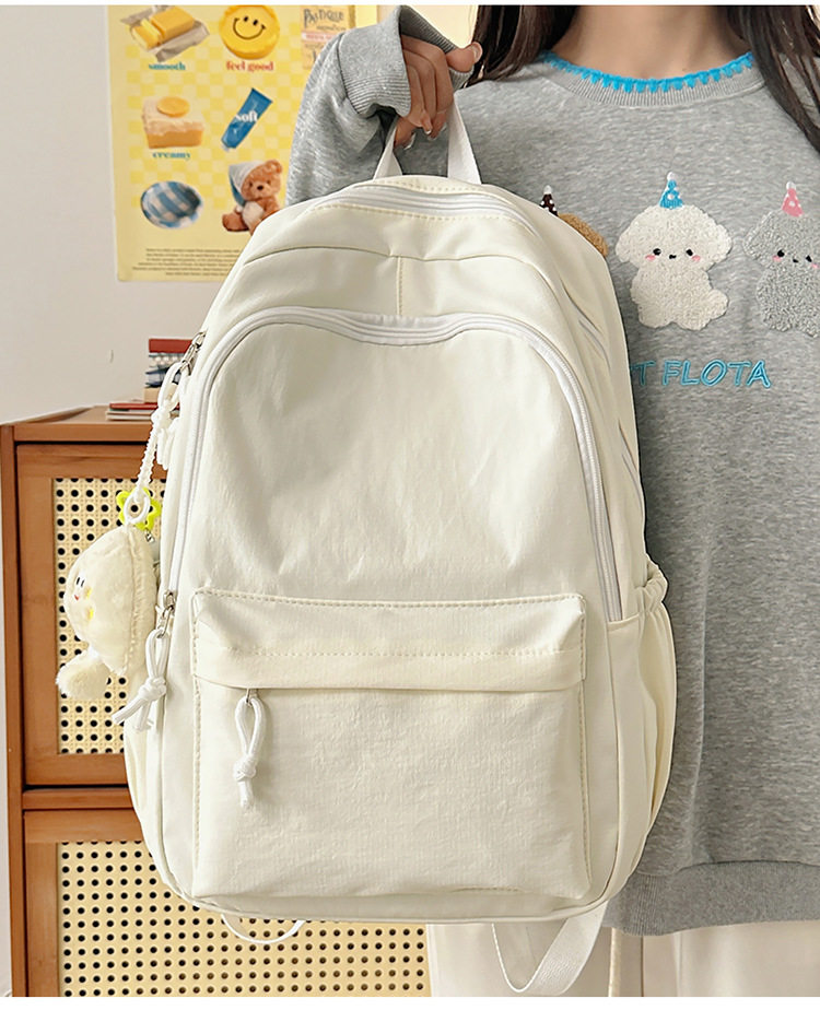 Solid Color Girl Junior High School Student Schoolbag Ins New Japanese Style Simple High School Student Backpack All-match Minimalist Style Backpack
