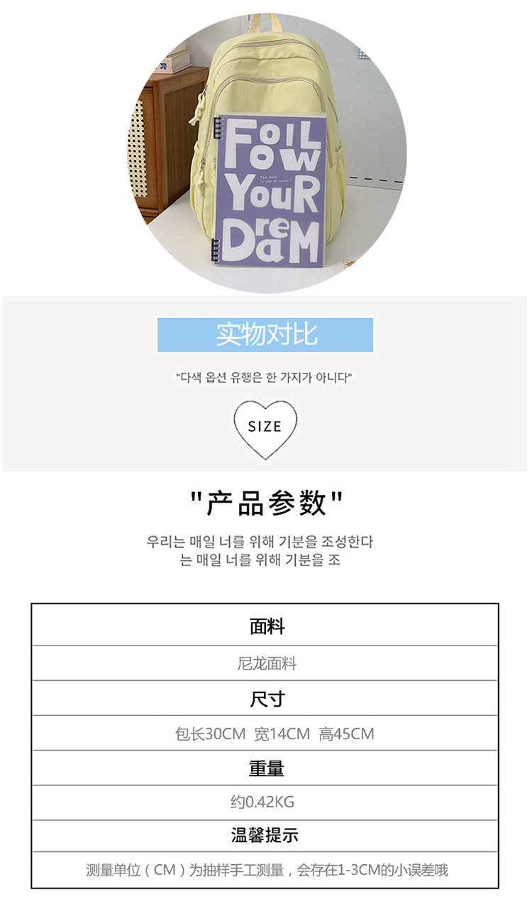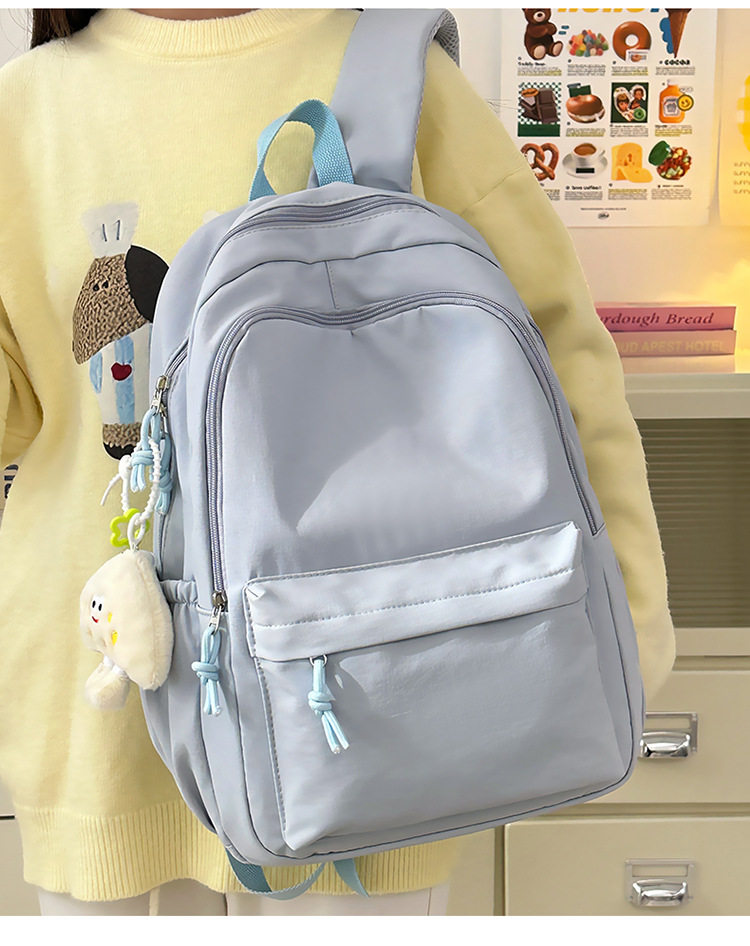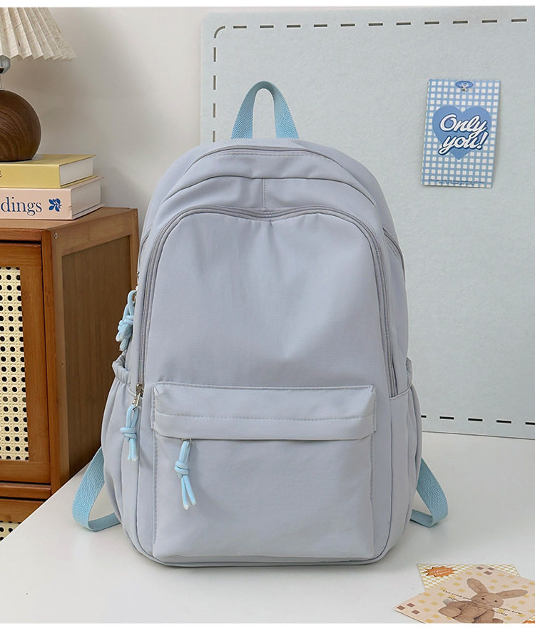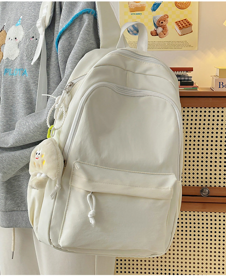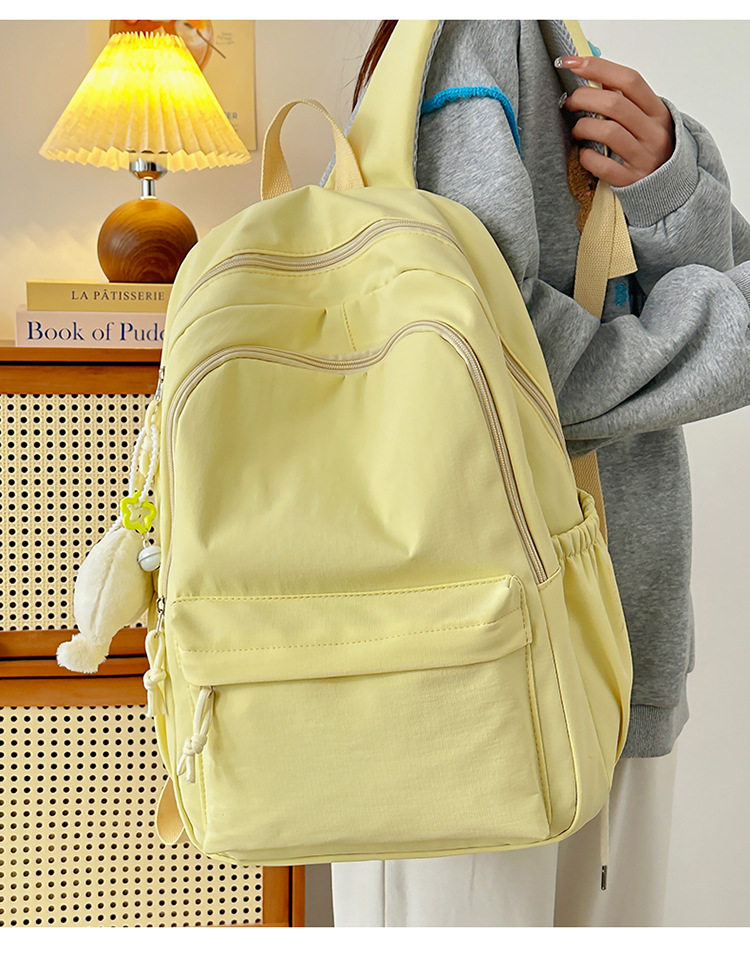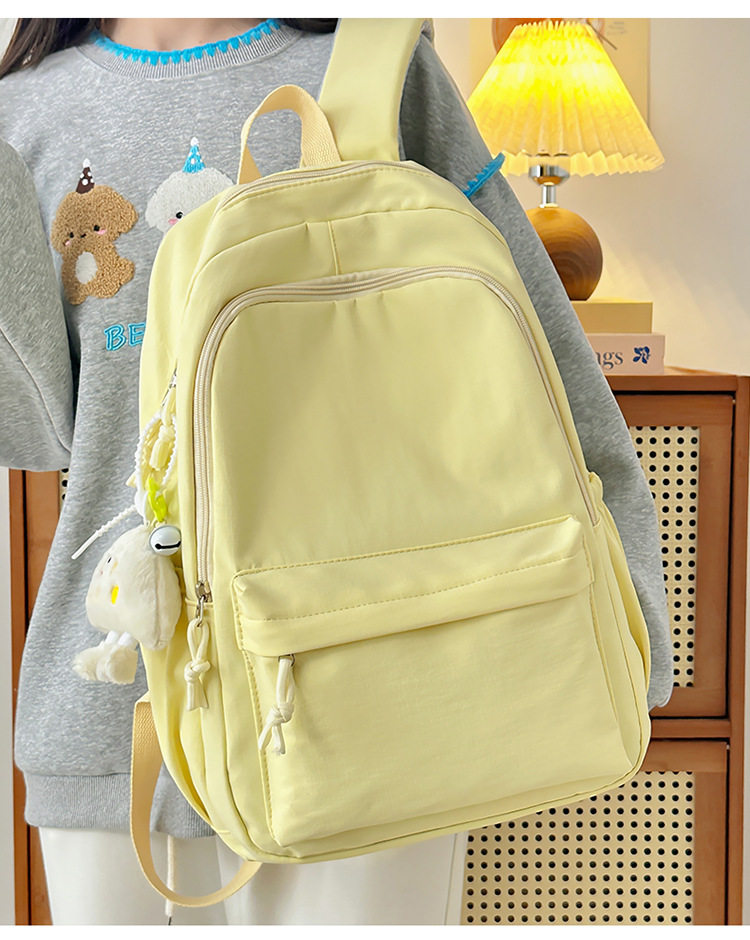 Solid Color Girl Junior High School Student Schoolbag Ins New Japanese Style Simple High School Student Backpack All-match Minimalist Style Backpack